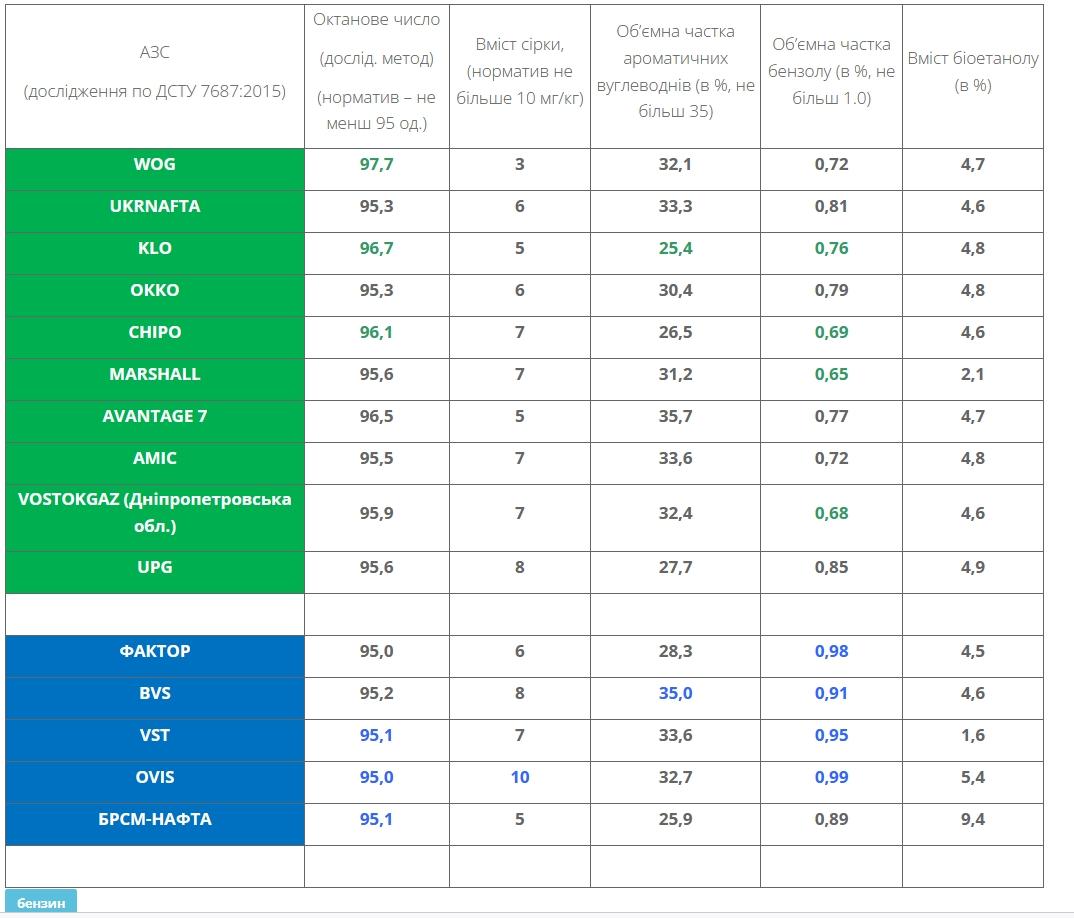 За даними фахівців Інституту споживчих експертиз, які у липні 2025 року провели масштабне дослідження 95-го бензину на заправках 15 великих всеукраїнських та регіональних гравців ринку, практично увесь відібраний бензин виявився відмінної або пристойної якості. Хоча дослідження було присвячено замірам вмісту біоетанолу в бензині (нагадаємо, як писав "Телеграф", регламент про обов’язкове його додавання набув чинності з 1 травня), але паралельно вимірювалися й інші показники – вміст сірки, бензолу тощо.
