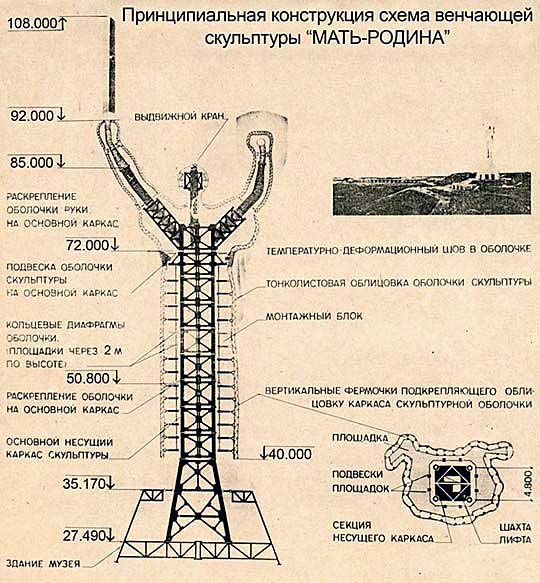 Проєкт "Батьківщина-Мати" народився в епоху, коли країна активно розвивала космічну програму і металургійну промисловість. Над монументом працювали інженери, які застосували найсучасніші на той час технології металевого будівництва. Деякі рішення в конструкції були запозичені з авіаційної та космічної індустрії.