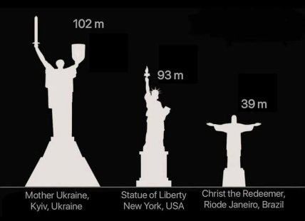 Для порівняння: монумент вищий за Статую Свободи в Нью-Йорку (93 метри з постаментом) і поступається лише кільком гігантським скульптурам у світі, зокрема "Статуї Єдності" в Індії.