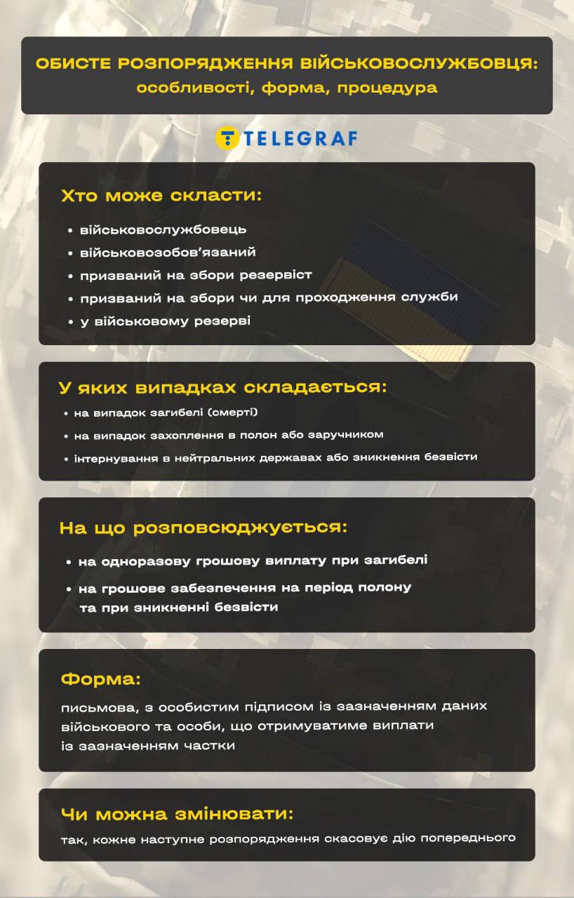 Таке розпорядження складається в довільній формі й не вимагає нотаріального посвідчення. Його можна змінювати стільки разів, скільки забажає військовий — діє останній варіант.
