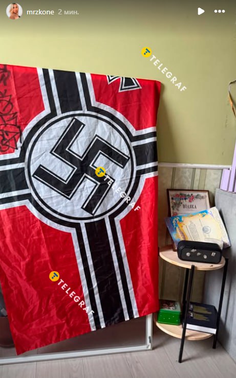 У своїх сторіз в Instagram вона показала прапор Третього Рейху, з яким фотографувалася до цього. Як і в першому випадку, знімок у її соцмережах протримався кілька хвилин.
