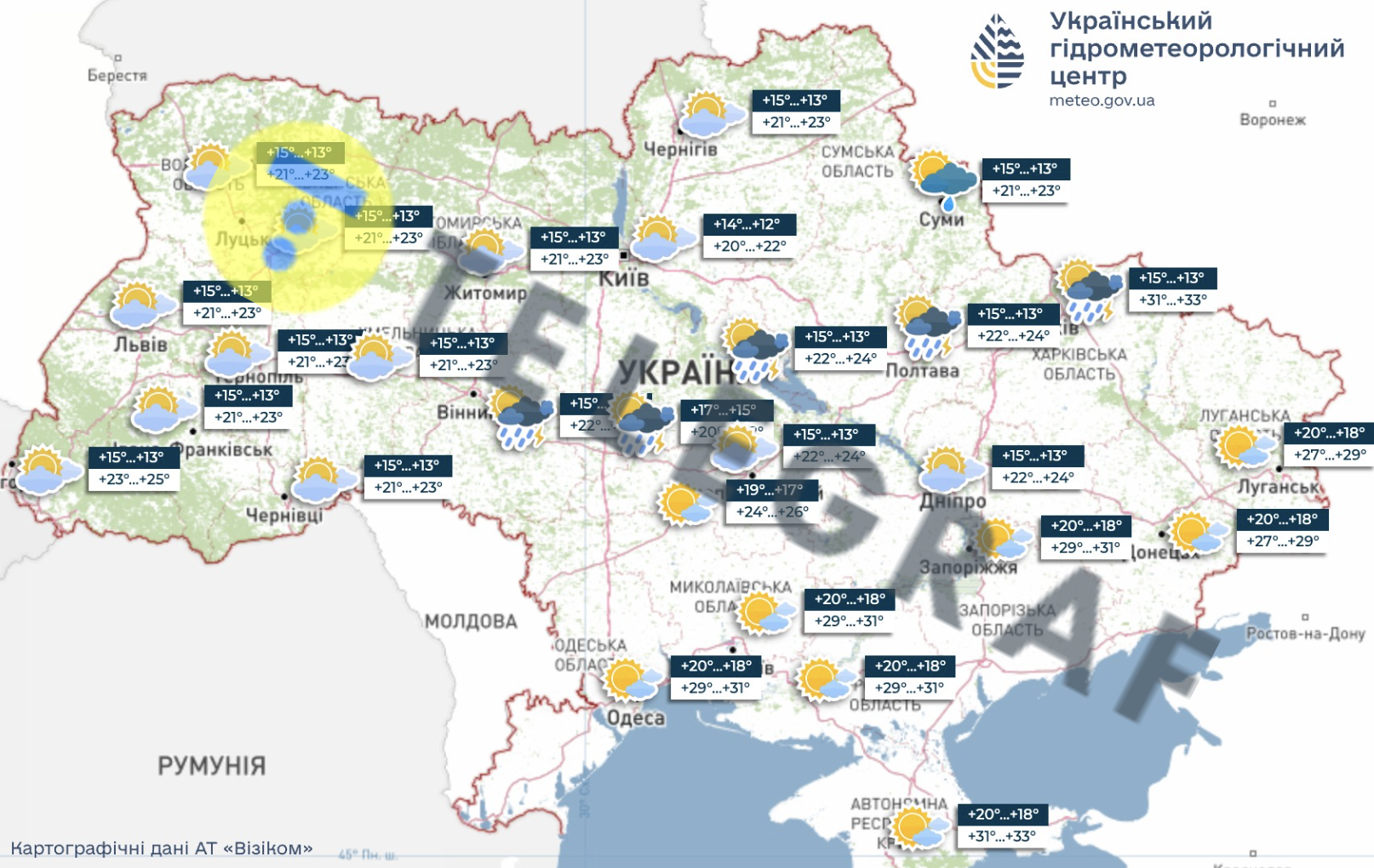 Зауважимо, що, за прогнозом Укргідрометцентру, Україну очікує підвищення температури вдень, але не настільки високо. Так, 16 серпня стовпчик термометра коливатиметься у межах +29 до +34 градусів, опади не прогнозуються.