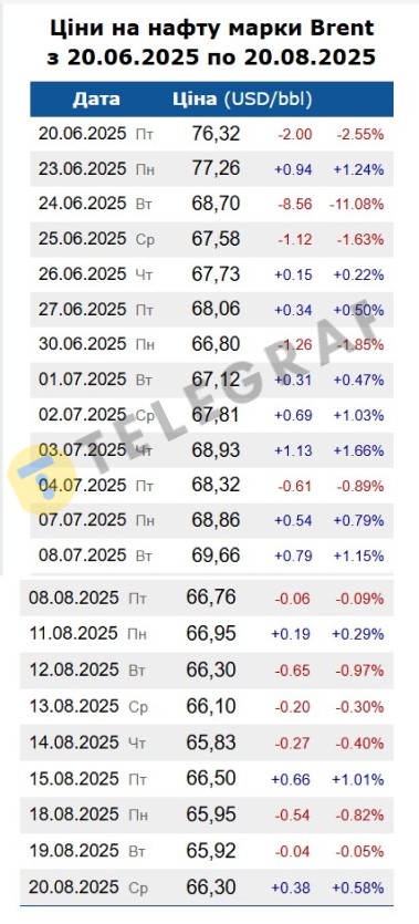 Наприкінці минулого тижня світові ціни дещо знизились на фоні очікувань зустрічі президента США Дональда Трампа та очільника Кремля Володимира Путіна. Трейдери розраховували на прогрес у переговорах, що міг би посприяти послабленню санкцій проти російської нафти. Це збільшило б обсяги постачання сировини на світовий ринок.