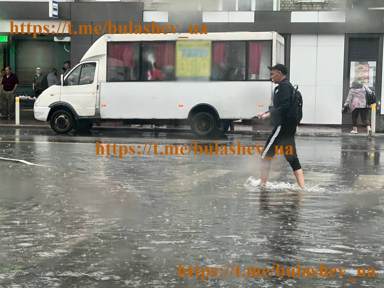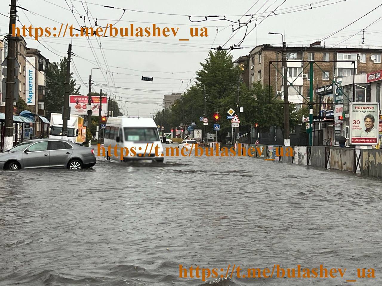 У Кременчуці через сильну зливу деякі вулиці перетворилися на справжні "канали", глибина води місцями досягає коліна.