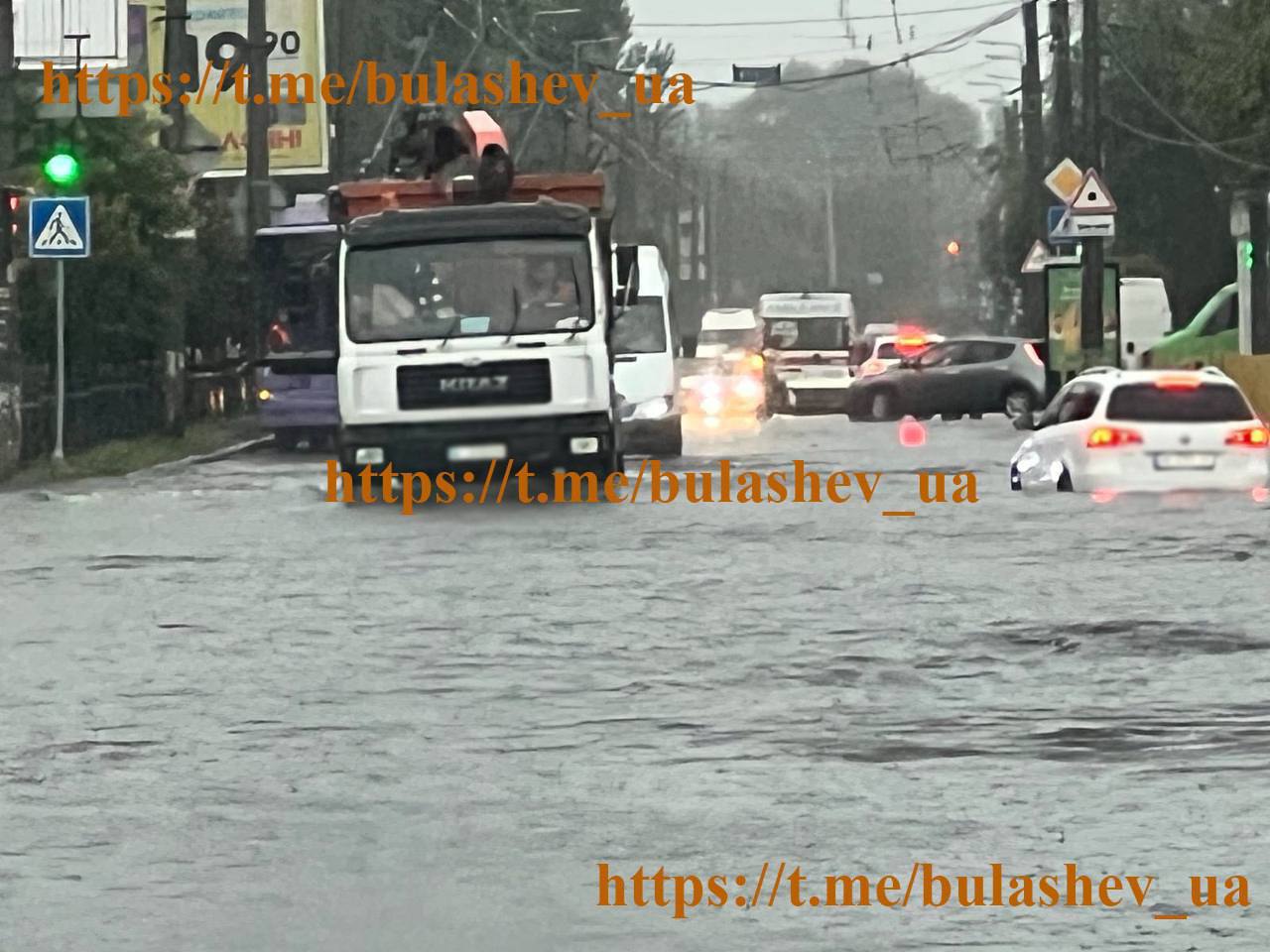 Через підтоплення змінився рух громадського транспорту: тролейбуси маршрутів №1, 2, 5А, 26А+ та 25 тимчасово не курсують. За можливості транспорт обслуговує альтернативний маршрут №3Б.