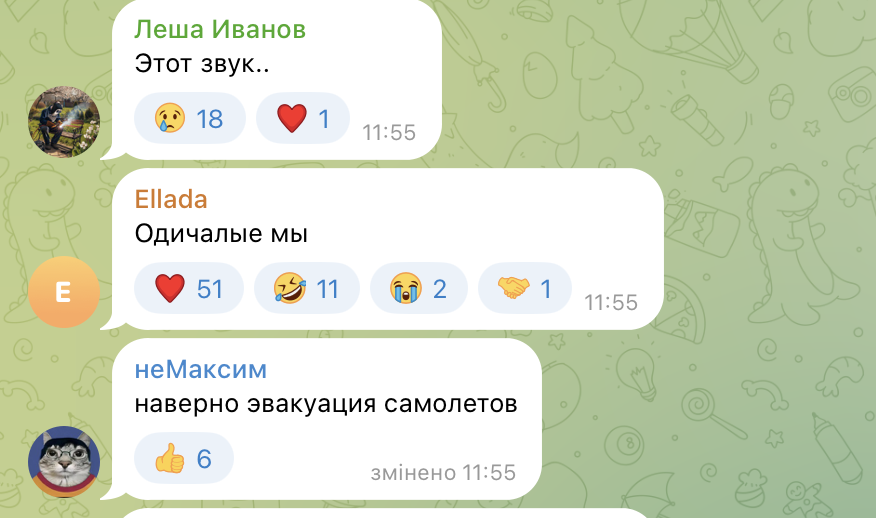 Чимало українців жартували, що звук літака у небі ніби з іншого життя, що власне і підтверджує радісна реакція чоловіка на відео. Були і думки, що це спецпредставник США Кіт Келлог повертається до Вашингтону з Києва. Адже він приїздив до столиці на День Незалежності України.