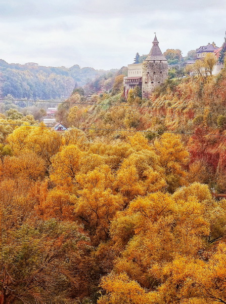 "Немає кращого Кам’янця, ніж Кам’янець восени", — відгукуються про Кам'янець-Подільський. І дійсно — жовтогаряче листя тільки підкреслює історичні принади міста. Тут цікаво і пейзажі познімати, і пошукати цікаві кольорові поєднання. На деяких вуличках червоне листя винограду контрастує зі стінами старих будинків, створюючи тло для романтичних портретів.