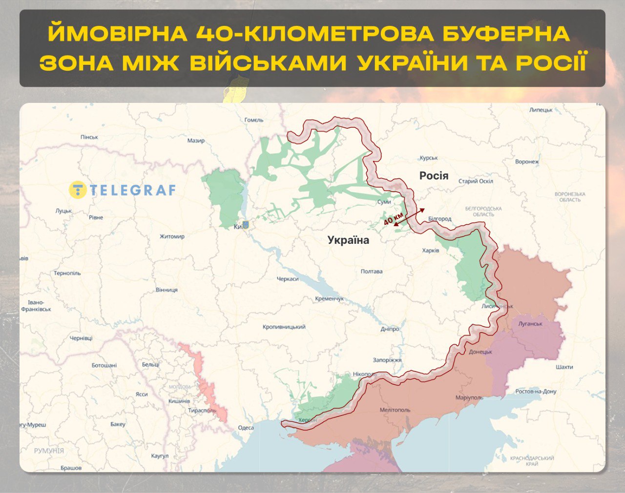 Колишній співробітник СБУ, військовий експерт та консультант парламентського Комітету з нацбезпеки Іван Ступак у коментарі "Телеграфу" пояснив, які наслідки може мати створення 40-кілометрової буферної зони між Україною та Росією. На його думку, така ідея передбачає відведення військ обох армій на 20 кілометрів углиб, але для України це матиме набагато серйозніші наслідки, ніж для противника.