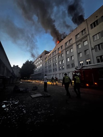 12 липня 2025 року росіяни атакували Львів. Одна з ракет влучила в підприємство "Електрон". Внаслідок обстрілу пошкоджено фасад будівлі, вибито вікна. На фотографіях видно дим від влучань.
