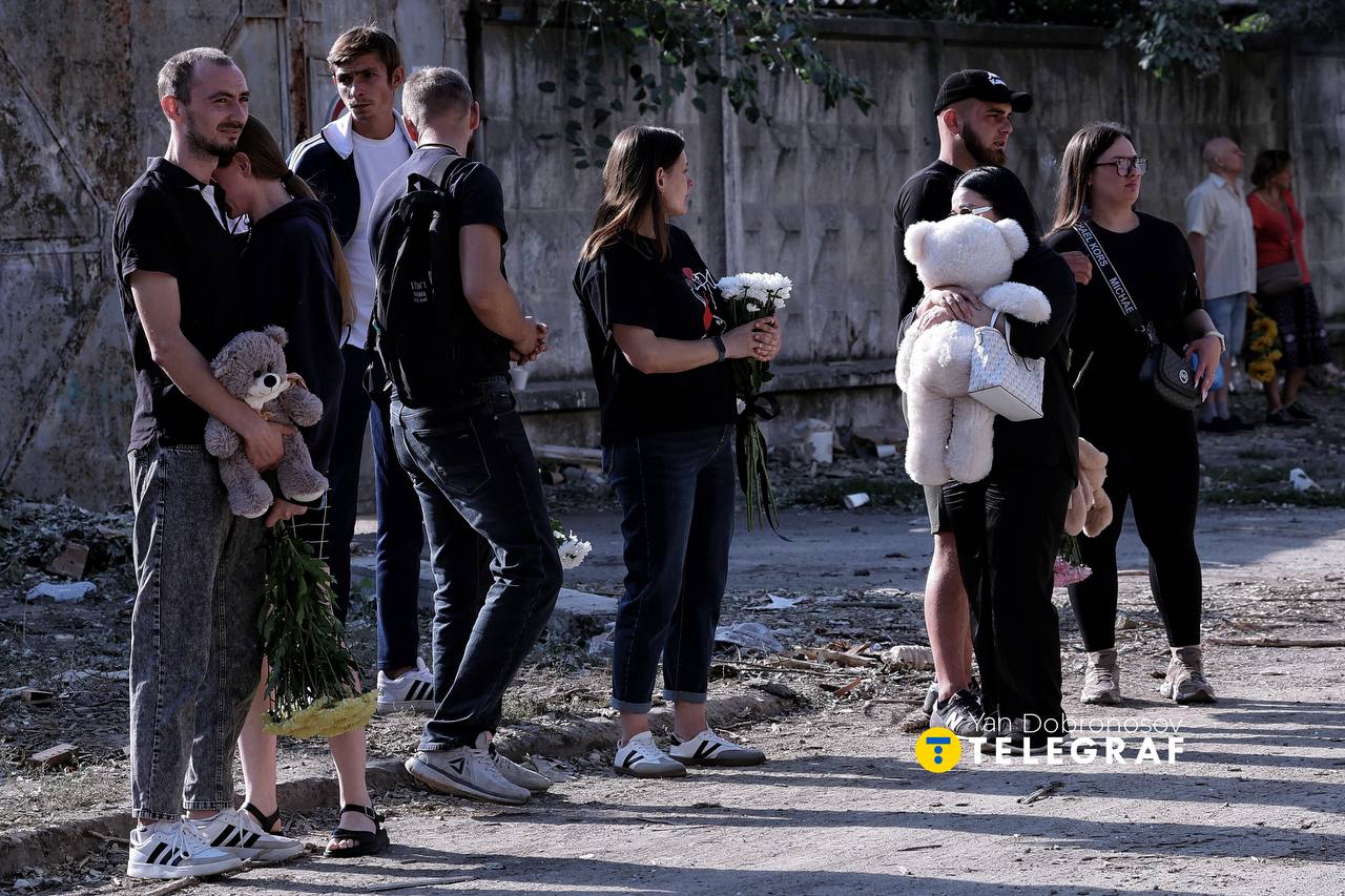 Люди несуть квіти та іграшки й не можуть утримати сліз. Найменшій загиблій дівчинці було лише два роки, її звали Ангеліна Галич. Її мамі назавжди залишилося 24 роки. У них могло бути світле майбутнє, але росіяни відібрали у них шанс на життя, атакувавши будинок, де вони мирно спали.
