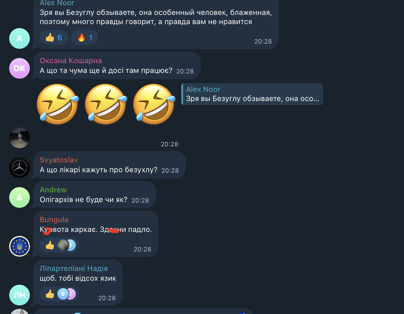 У коментарях під постом інших ресурсів, які поширили її заяву, користувачі відповідали депутатці дуже грубо, висловлюючи роздратування. Люди закликали Безуглу припинити це страхітництво.