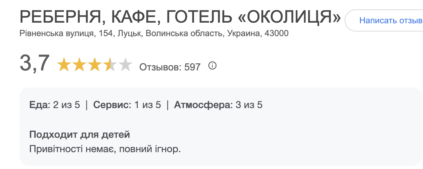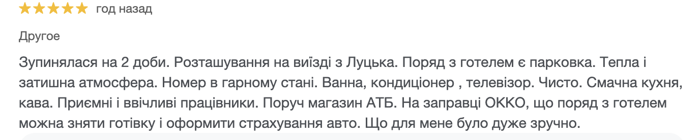 Зауважимо, що відгуки про готель зазвичай позитивні, але якщо відкрити Google-відгуки можна побачити оцінку 3,7 та чимало незадоволених клієнтів. Щоправда, більшість скаржилась на обслуговування у ресторані та якість їжі.