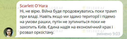 Водночас частина коментаторів загалом не вірить і у дієвість перерахованих факторів. Вони вважають, що єдина надія на перемогу — розпад Росії, адже Путіна не зупинить навіть капітуляція України.