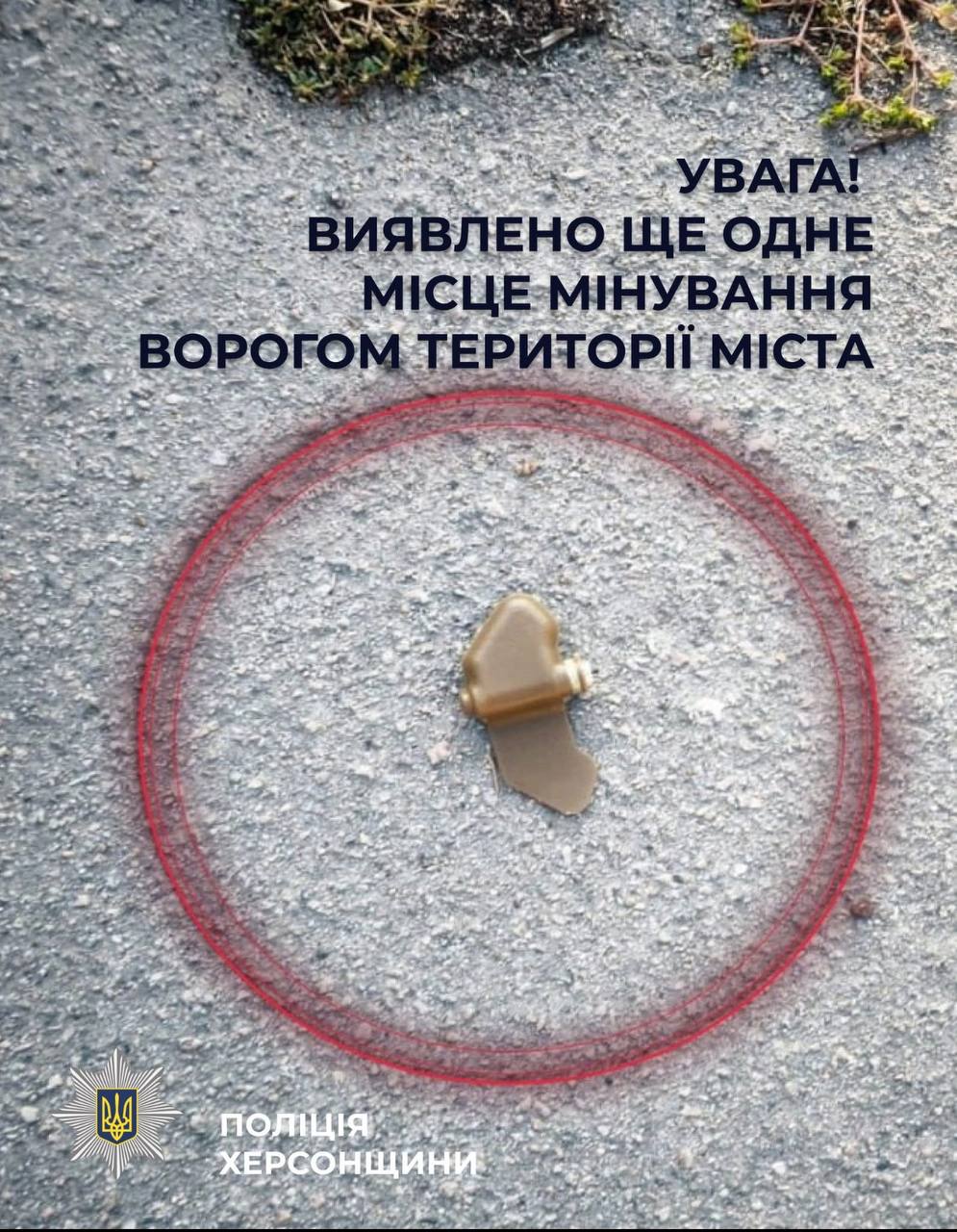Про це повідомили у прес-службі поліції Херсонської області. Там написали, що міни-"пелюстки" побачили у районі перехрестя проспекту Незалежності та вулиці Перекопської, на вулиці Університетській в районі площі Івана Мозгового та перехрестя з вулицею Суботи.