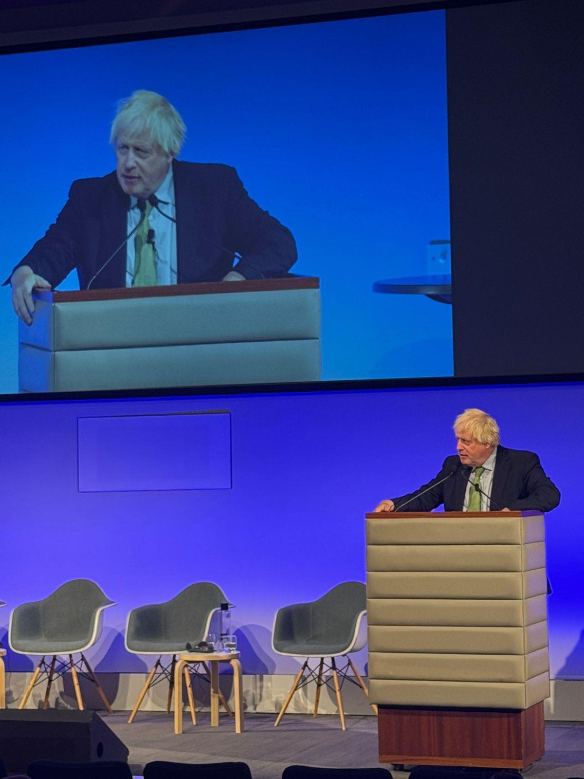 Про це повідомили на Facebook-сторінці асоціації. У своєму виступі Джонсон заявив, що стратегічно Росія вже програла війну та не здатна зламати опір українського народу. Він рішуче засудив ракетні удари по цивільних об’єктах, згадавши про загибель жінки та її дитини у Києві внаслідок атаки дрона-камікадзе "шахед".