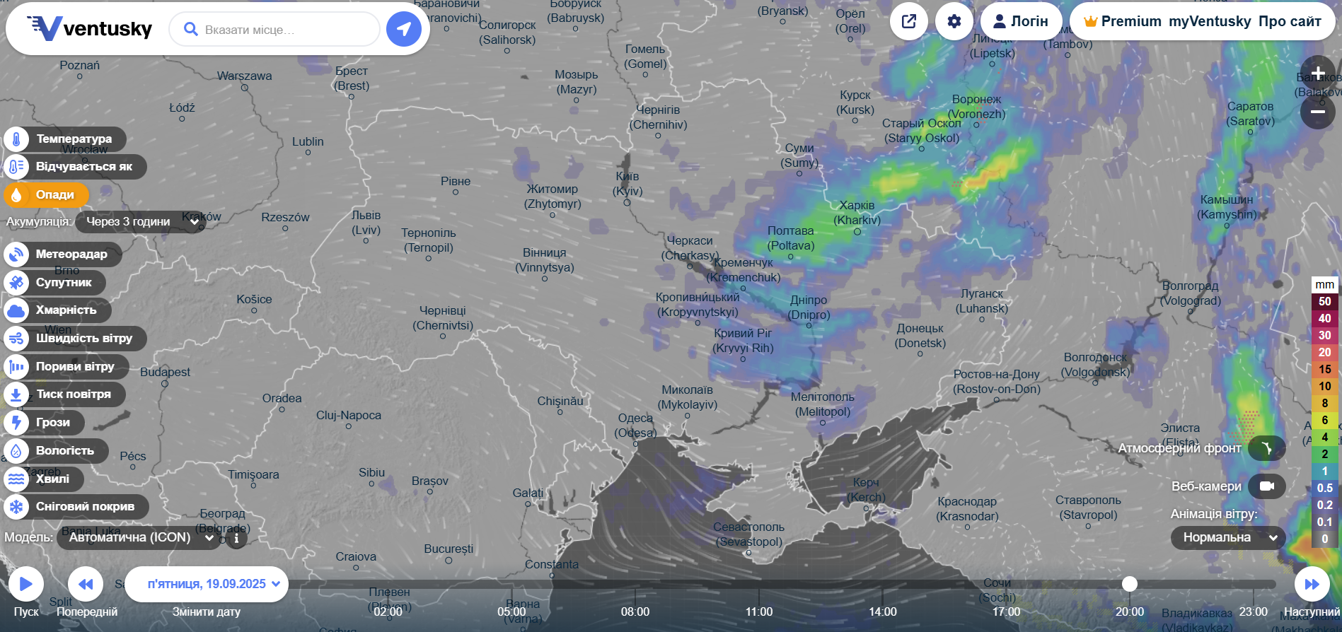 19 вересня зона дощів переміститься на східні й центральні регіони. Опади пройдуть на Харківщині, Полтавщині та частково на території Дніпропетровської області. Тут прогнозується до 3 міліметрів опадів.