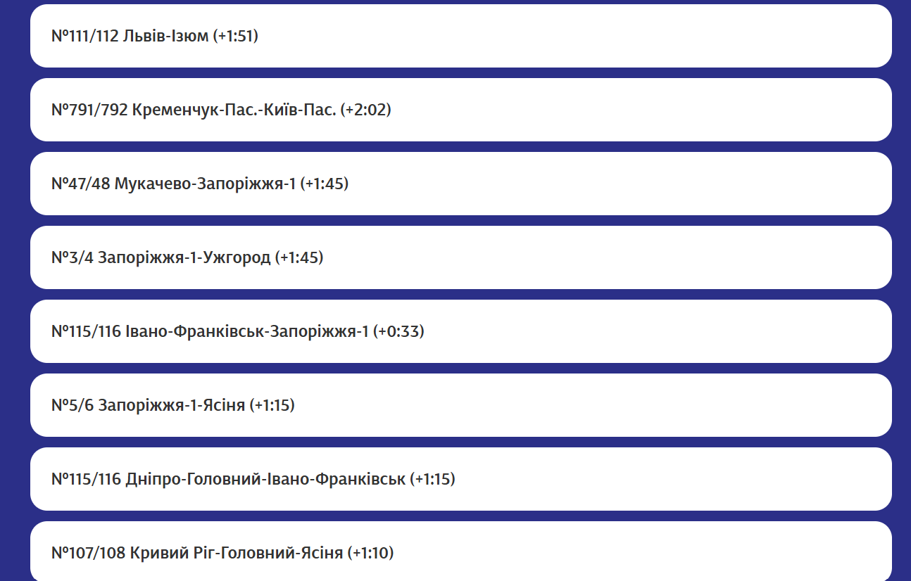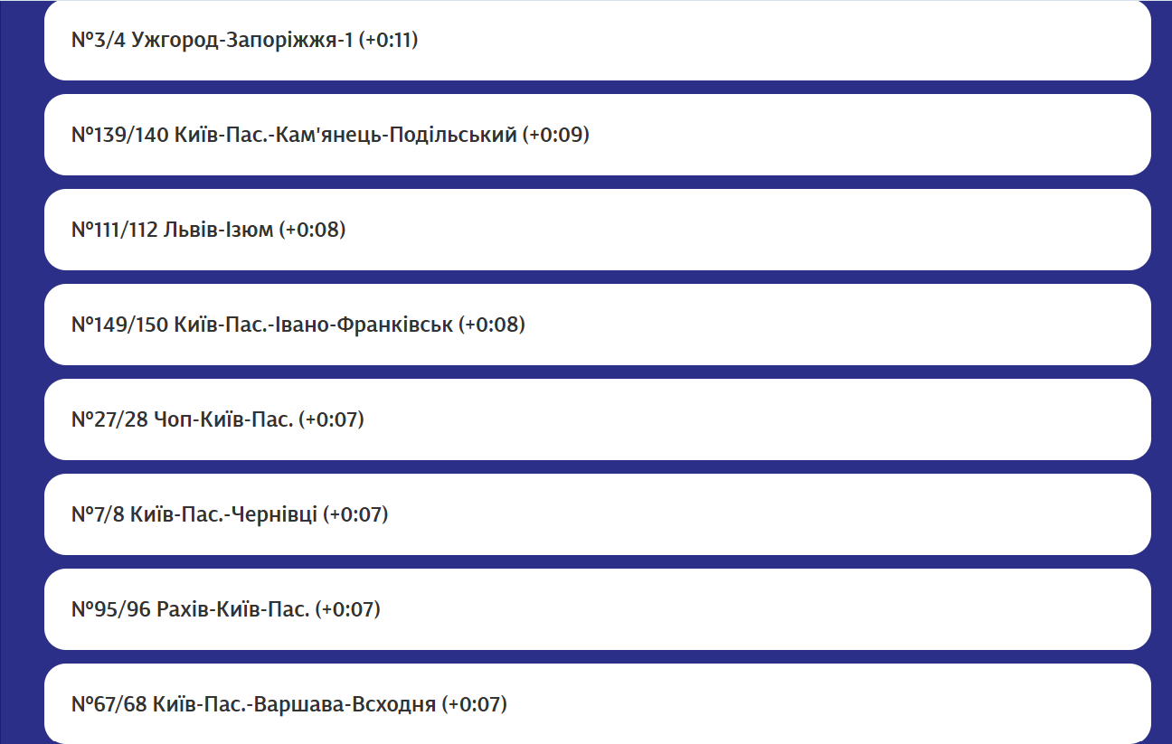 Затримуються наступні поїзди (інформація станом на 5:28 18 вересня)