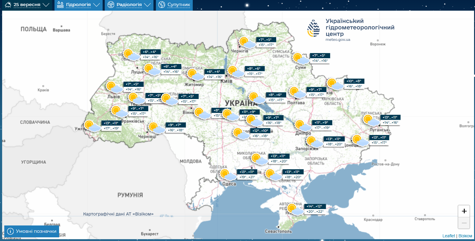 За даними Укргідрометеоцентру, найтеплішими 24 вересня будуть Одещина, Закарпаття, Запорізька, Херсонська, Миколаївська, Харківська, Донецька та Луганська області. Тут температура підніметься вище за +20.