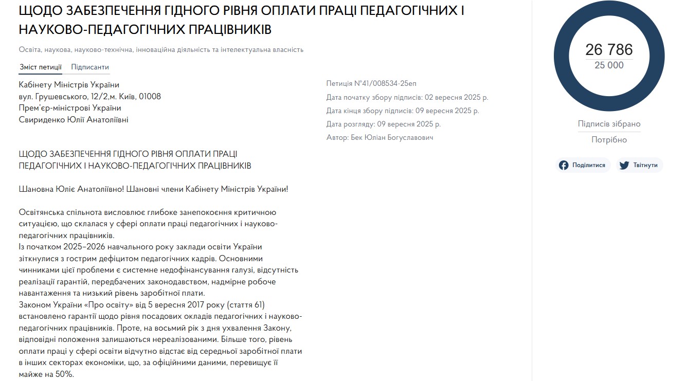 – Держава повинна забезпечити здобуття повної загальної середньої освіти дітей за їхнім місцем проживання. А Уряд спочатку припинив фінансування шкіл, де навчається менше ніж 25 дітей, з цього вересня – менше ніж 45, з наступного – менше ніж 60. А де ми зупинимося? Залишимо одну школу на всю Україну? Мова про те, що якщо ми хочемо якісну освіту, то треба створювати умови, щоб діти могли вчитися. А ідея, давайте все зекономимо, закриємо і з цього станемо щасливими, не працює. Всі думають, що освіта це тягар, насправді освіта це рушій розвитку економіки та суспільства. Але якщо середня зарплата на 2026 рік прогнозується на рівні 30 тис., а по Києву – 40 тис. гривень, то у вчителя це 13,8 тис. гривень. Яка молода людина з вищою освітою піде працювати до школи?