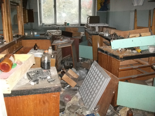 У багатьох кімнатах стоять дивні прилади, призначення яких важко зрозуміти з першого погляду. Це спеціальне обладнання для хімічних досліджень, яке колись коштувало чималих грошей. Тепер воно просто іржавіє та руйнується.