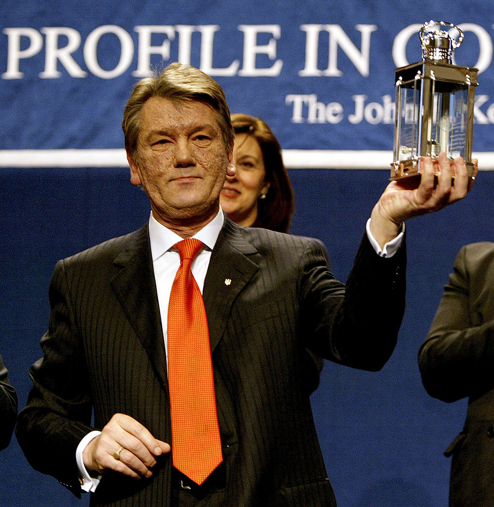 Віктор Ющенко — третій президент України, колишній голова Нацбанку та один із символів Помаранчевої революції. Під час передвиборчої кампанії у 2004-му році його було отруєно, цей замах ледь не коштував йому життя і сильно вплинув на зовнішній вигляд політика.