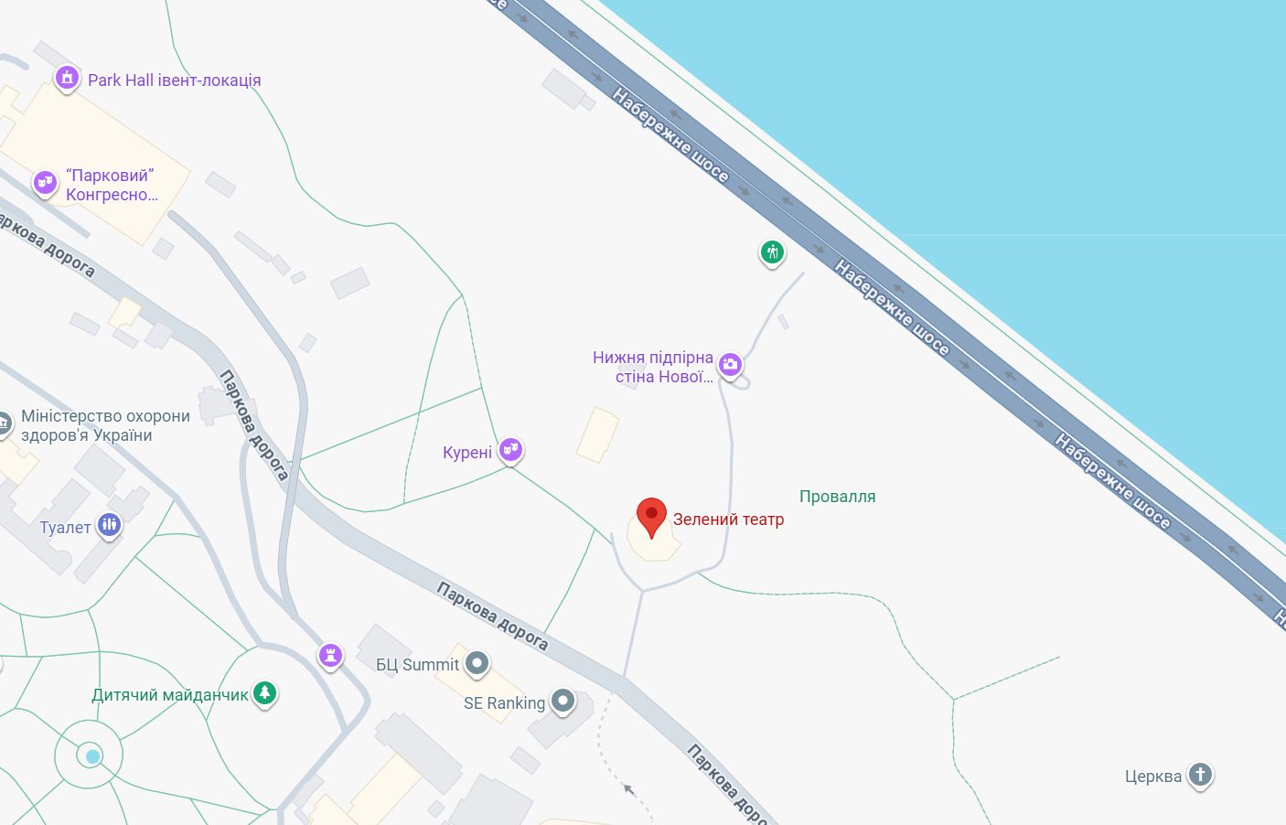 Зелений театр на схилах Дніпра є дуже атмосферним місцем. Його, як розважальний центр, збудували у 1949 році, взявши за основу одну зі стін каземату Нової Печерської фортеці XIX століття, проте з появою Гідропарку та інших місць відпочинку локація втратила популярність серед киян.