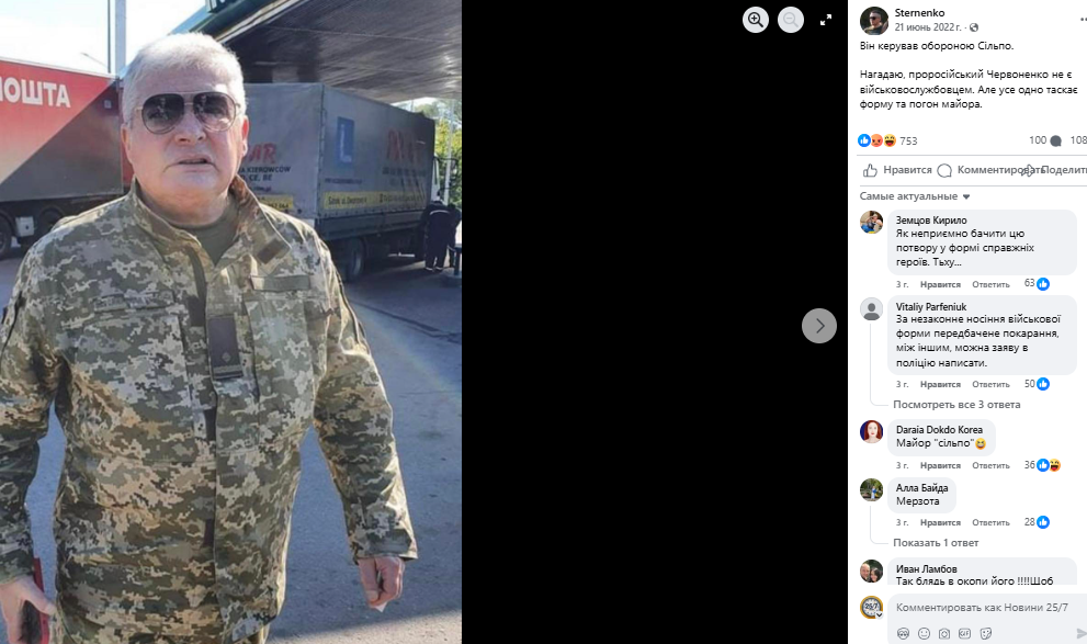 Пізніше колишній міністр проривався позачергово до Польщі, де його бачили в одному із ресторанів. А потім Червоненко повернувся до України та у липні 2022 року "засвітився" в українській військовій формі у винному магазині.