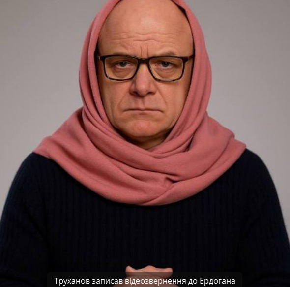 На іншому зразку народної творчості Геннадія Труханова зображено в хустці на голові, одягненій так, як це роблять жінки в Туреччині. У нього жалібний вираз обличчя і складені на грудях руки. Внизу коментар: "Труханов записав відеозвернення до Ердогана". Ймовірно, автор натякає на те, що мер Одеси проситиме притулку у Туреччині.