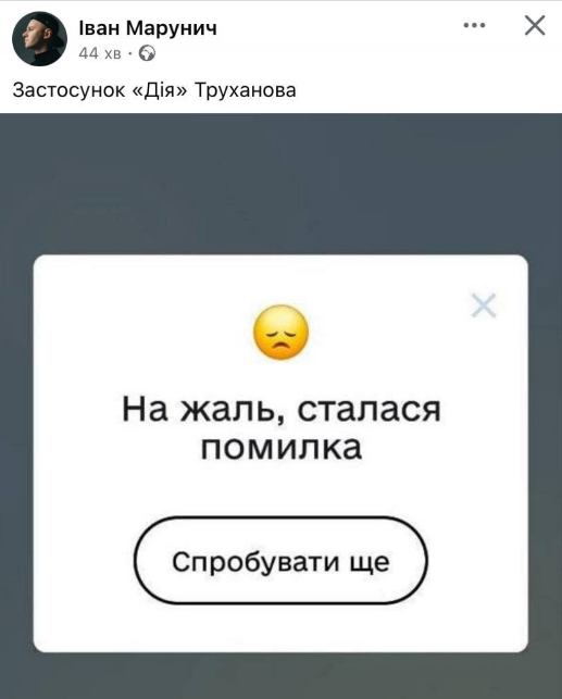 Український музикант Іван Марунич зобразив, як виглядає "Дія" Труханова, коли він намагається завантажити паспорт.