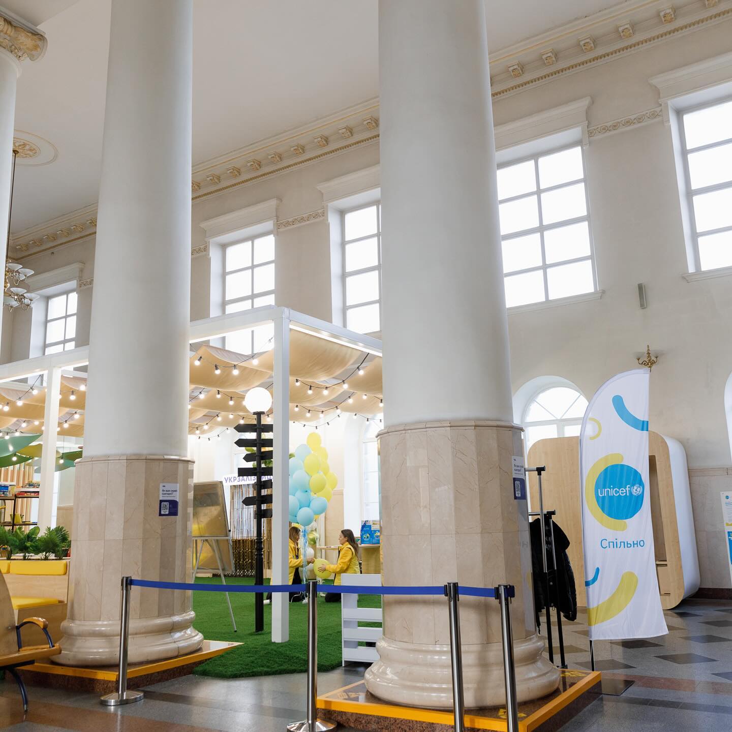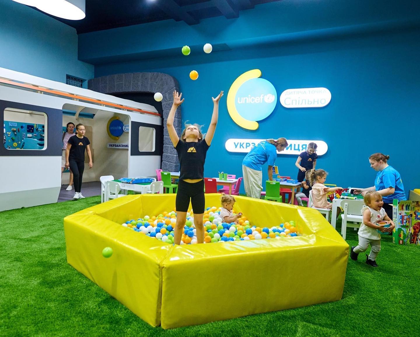 Щоб дістатись з одного міста України в інше, часто потрібно їхати з пересадками. У великих точках пасажиропотоку, Укрзалізниця та Дитячий фонд ООН (ЮНІСЕФ) мають спеціальні локації "Спільно". Вони діють на залізничному вокзалі Києва, Харкова, Львова, Дніпра та Одеси. Тут безкоштовно діти можуть побавитися іграшками, настільними іграми, розмальовками та навіть полазити в справжньому потягу чи пограти у футбол. Поки діти розважаються, дорослі можуть отримати консультації з медичних питань, іншу допомогу та щонайменше зарядити гаджети.