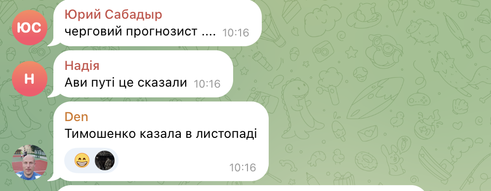 У коментарях українці зазначили, що такі заяви їх уже втомили. Нещодавно про терміни закінчення війни говорили нардепи Юлія Тимошенко, Максим Бужанський та Олексій Гончаренко. Люди висловили думку, що депутати таким чином просто забивають ефір і грають на нервах людей, які переживають 4 рік війни.