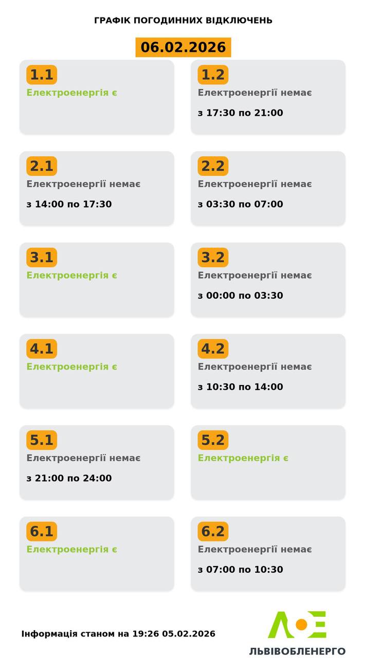 Графік відключень електроенергії у Львові та Львівській області визначає ПрАТ "Львівобленерго". Дізнатися свою групу (чергу) відключень можна на сайті компанії у спеціальному розділі.