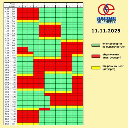Детальніше про відключення електроенергії на Чернігівщині можна дізнатися у розділі на сайті АТ "Чернігівобленерго" або через чат-боти у Viber і Telegram @ChernigivOEbot.