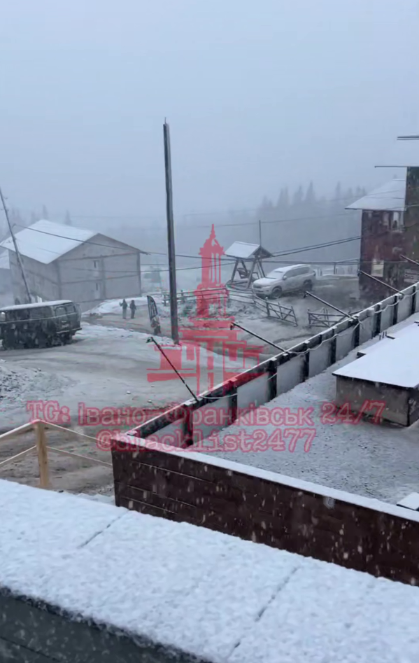 Надвечір суботи, 18 жовтня, у районі гірськолижного курорту Буковель на Івано-Франківщині пішов досить сильний сніг. Про це інформують місцеві telegram-канали, які публікують кадри негоди.