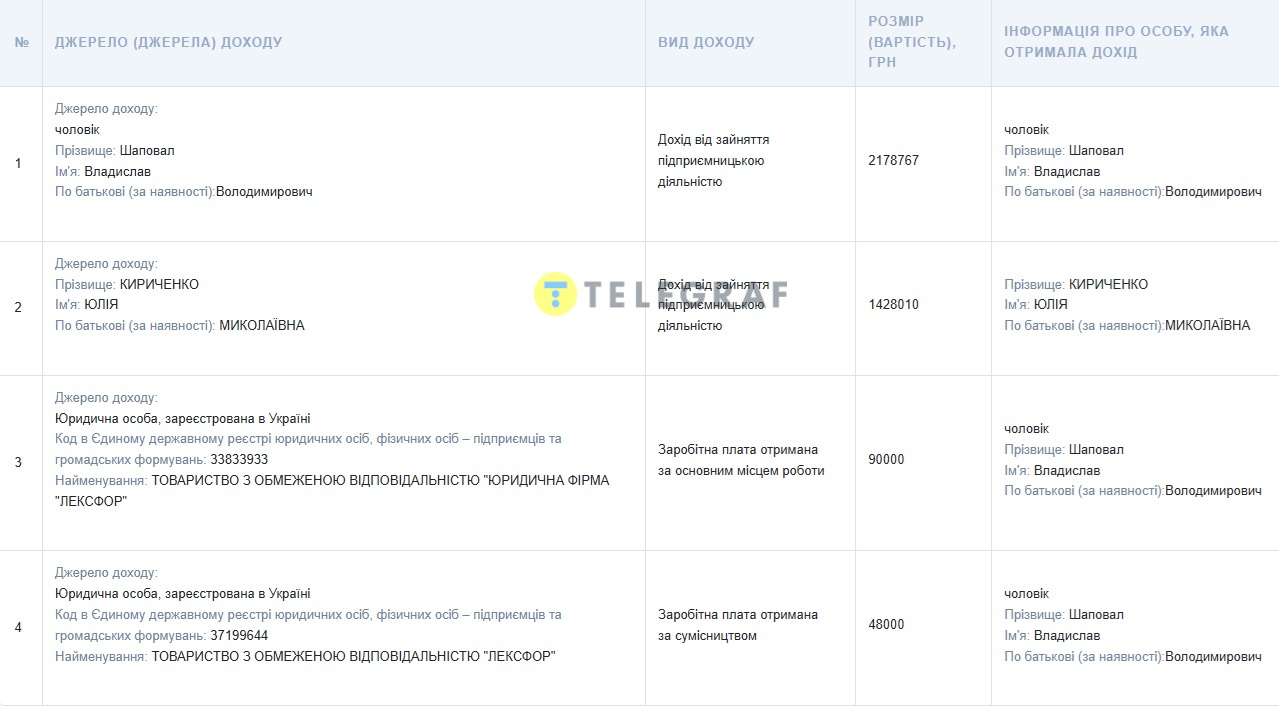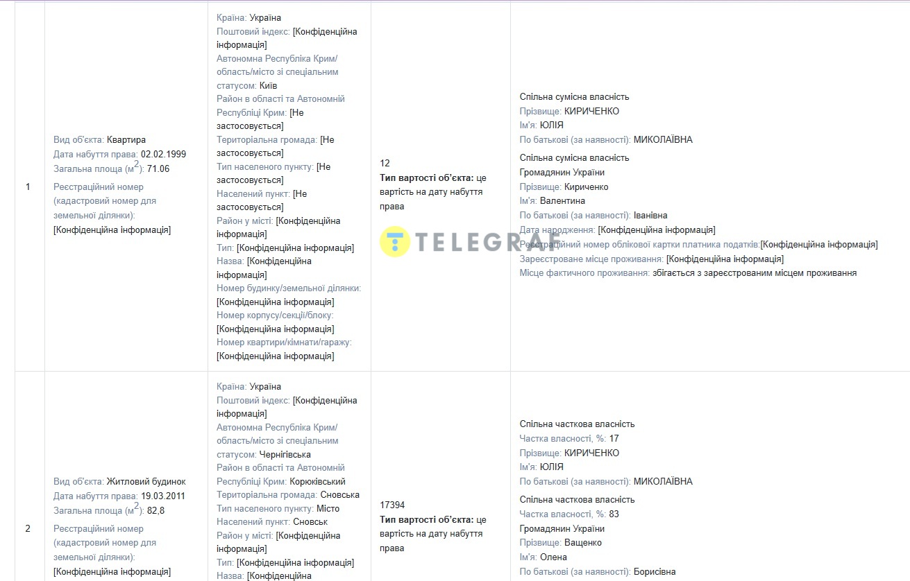 "Телеграф" розповідає про декларацію Юлії Кириченко.