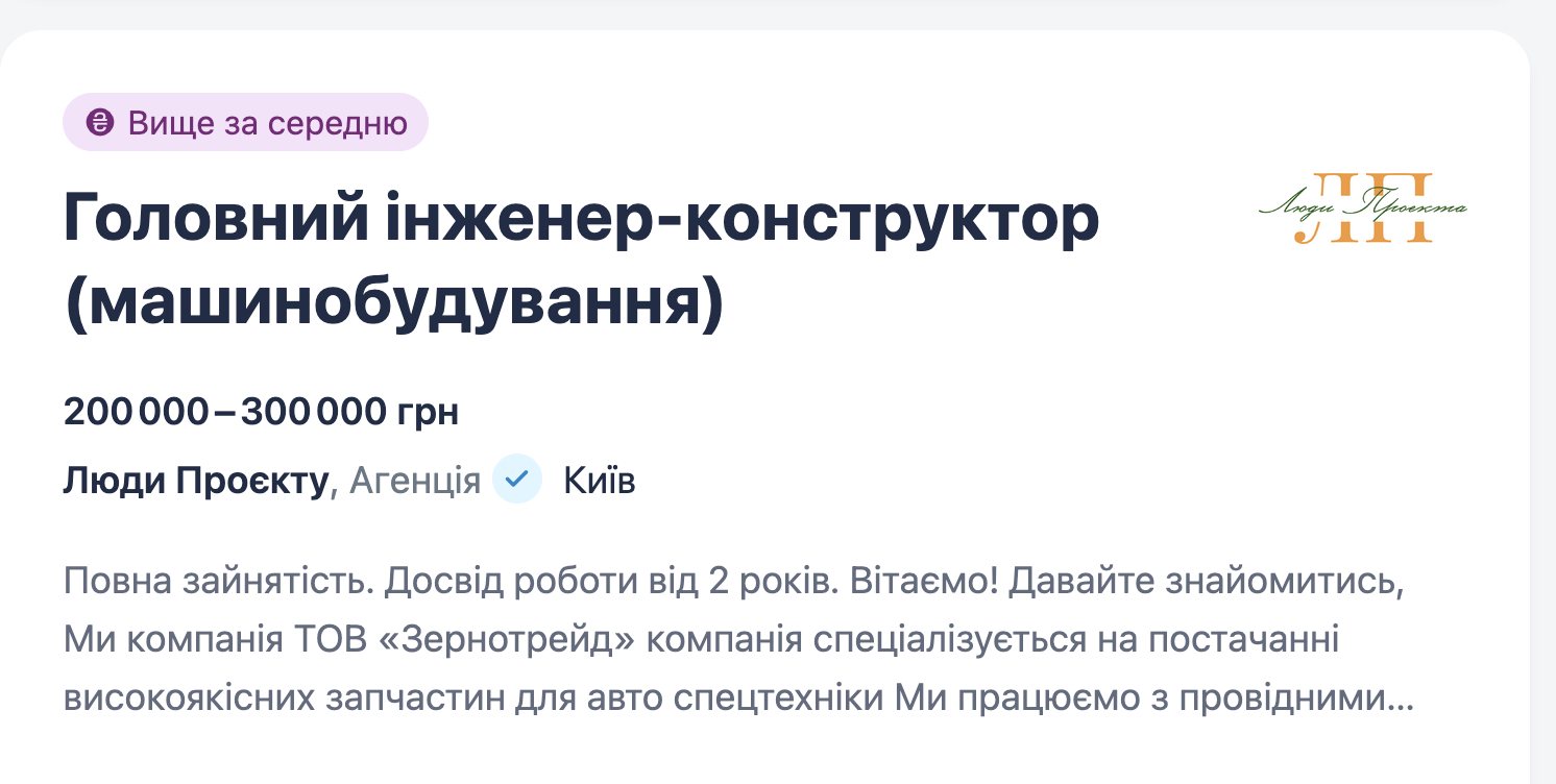 - Головний інженер-конструктор може отримувати від 200 тисяч на місяць.