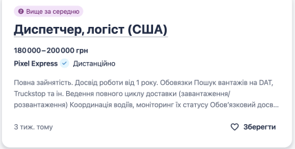 - Диспетчер, логіст зі знанням іноземної мови. На цій посаді обіцяють зарплату до 200 тисяч на місяць.