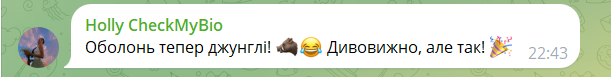 Українці у коментарях відзначили, що природа у Києві дійсно очистилася, а район Оболонь, вочевидь, перетворився на "джунглі" через його нових мешканців.