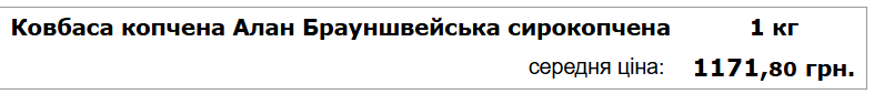 Про це свідчать дані моніторингу цін сайту "Мінфін". Йдеться про ковбасу Алан Брауншвейська сирокопчена.
