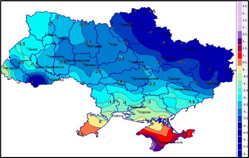 - За даними розрахунків світових прогностичних центрів, зокрема, Національної лабораторії дослідження атмосфери і океану США (NOAA), Європейського центру середньотермінових прогнозів (ECMWF) цьогорічна зима в Україні ймовірно буде теплішою, ніж зазвичай, подібною до зим у попередні роки. Середня за сезон температура повітря очікується на 1-2 градуси вищою за кліматичну норму. Ймовірність такої температури становить 70-80%. Це продовжує тенденцію м’яких зим, характерну для останніх десятиліть.