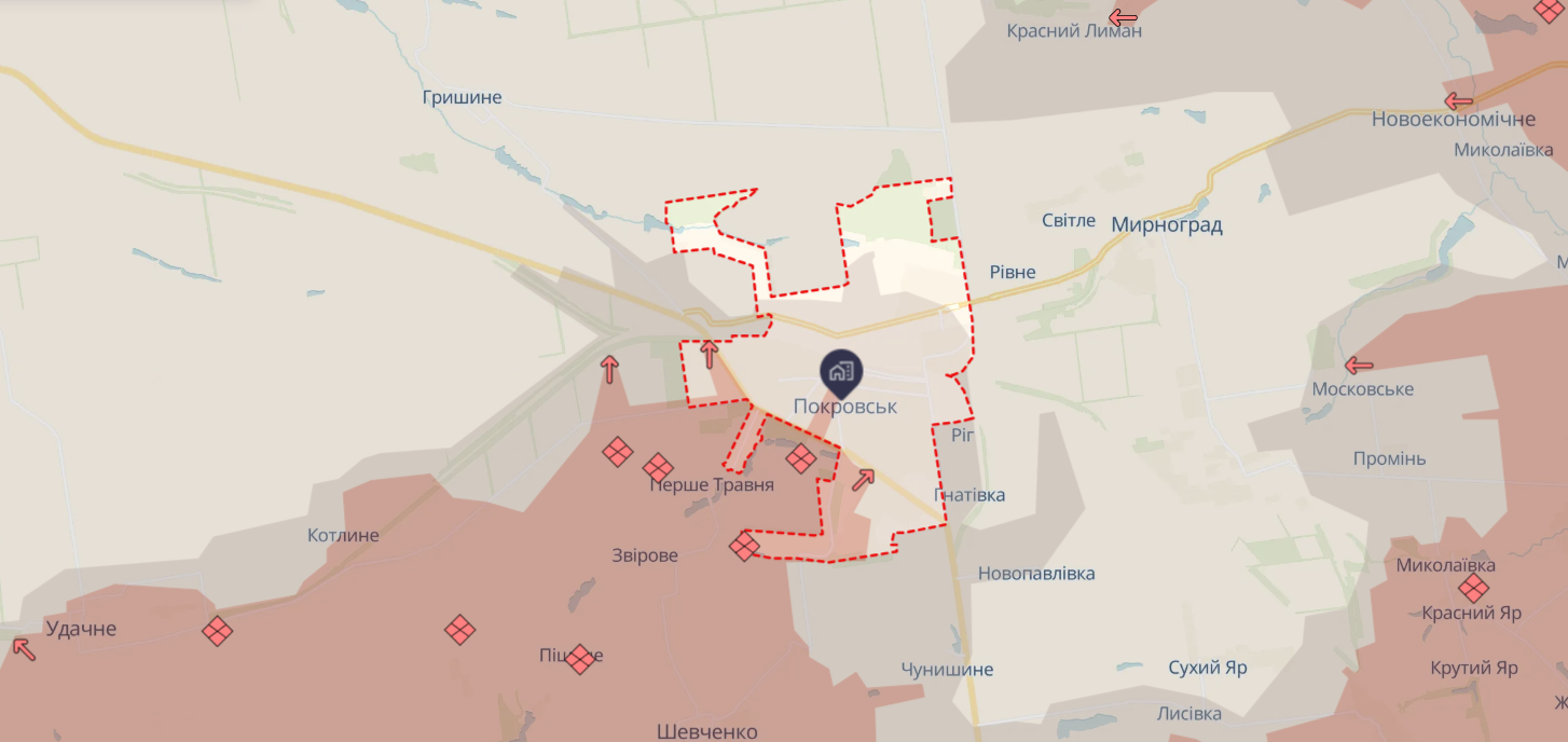 Покровськ, де зосереджується найбільша частка щоденних російських штурмових дій, залишається головним напрямком наступу ЗС РФ