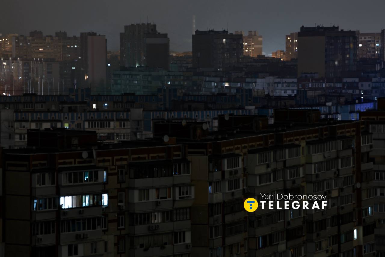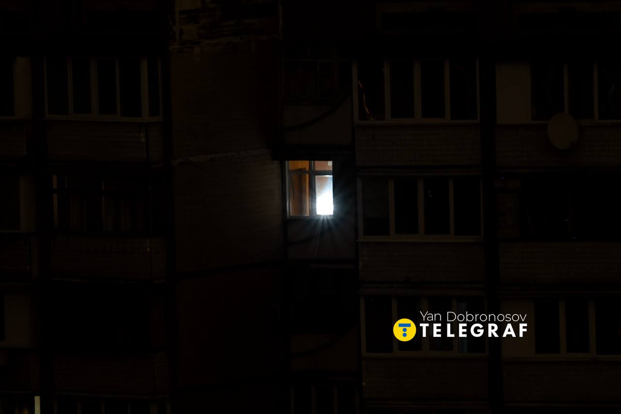 Більшість вікон залишаються темними. Лише подекуди у квартирах горить світло від побутових генераторів, блимають вогники ліхтарів або навіть свічок.