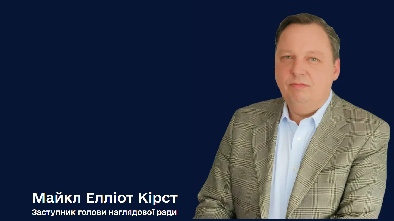 Заступник голови Майкл Елліот Кірст обіймає посаду керуючого директора брюссельської консалтингової компанії Euro Atlantic Partners, є старшим радником Державно-приватної програми Міністерства торгівлі США з будівництва малих модульних реакторів та членом Ради директорів та Виконавчого комітету Американсько-української ділової ради.