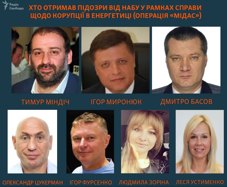 10 листопада детективи Національного антикорупційного бюро (НАБУ) прийшли з обшуками до бізнесмена та співвласника студії "Квартал 95", "друга" президента Володимира Зеленського Тимура Міндіча, екс-міністра енергетики Германа Галущенка та "Енергоат". За кілька годин до цього бізнесмен начебто залишив територію України.