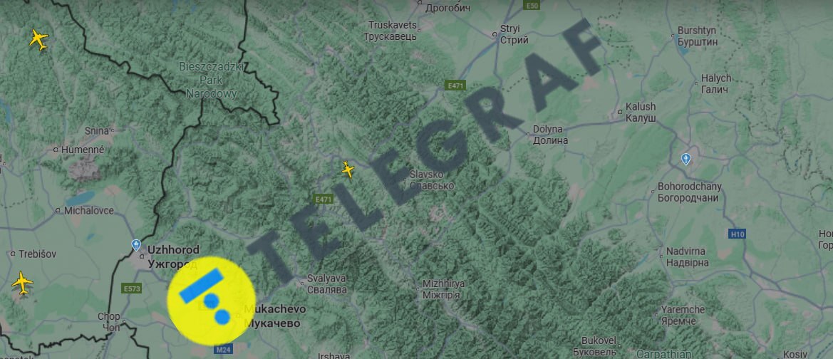 Радари зафіксували літаки над Закарпатською областю. Скріншот: "Телеграф"