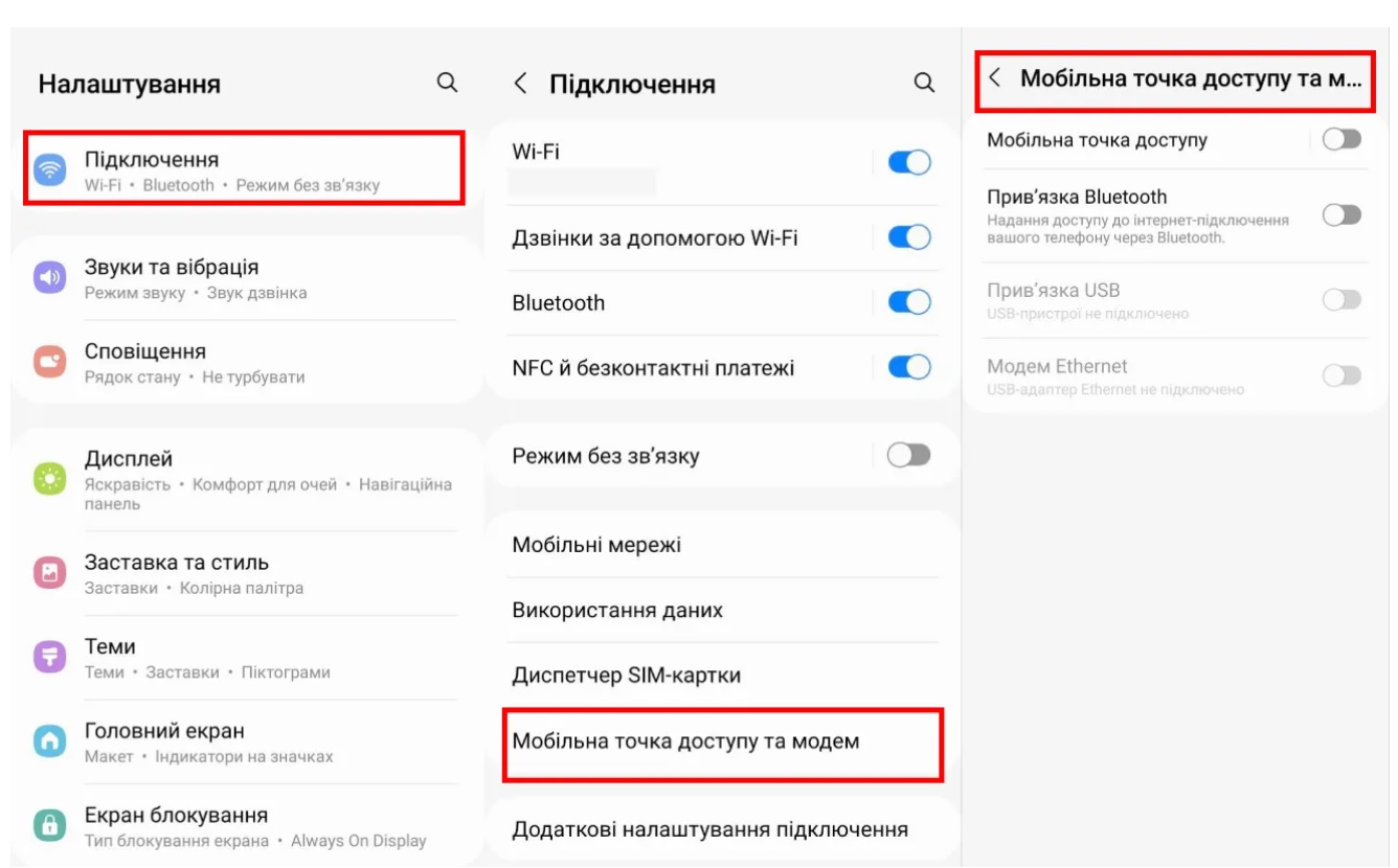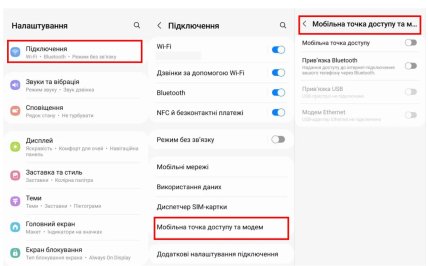 - Виберіть пункт "Мобільна точка доступу" або "Режим модему".