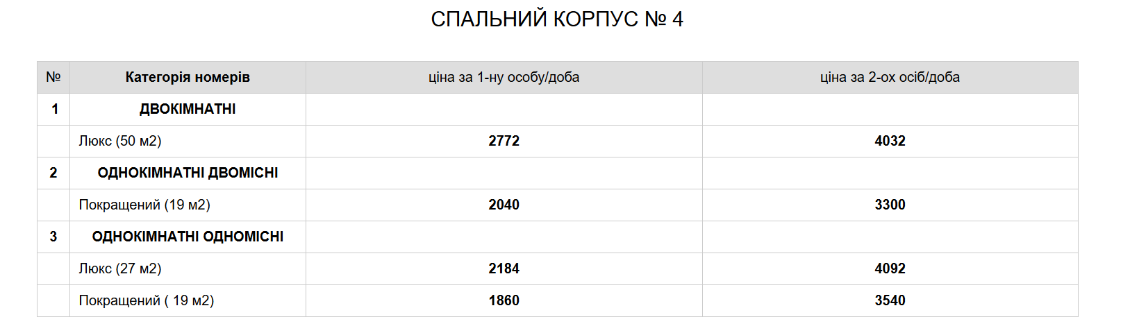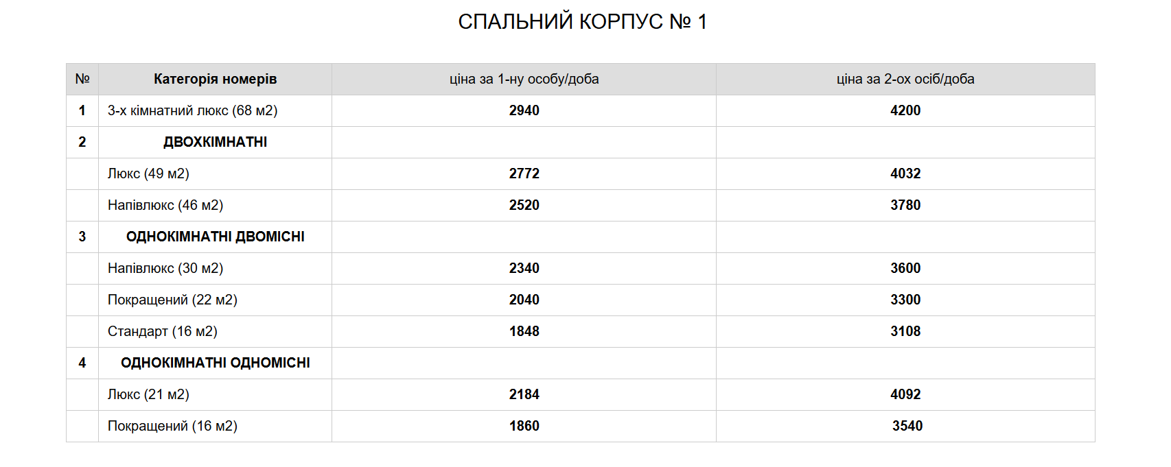 Більшість процедур та аналізів входять у вартість путівки. Санаторій пропонує 175 номерів різних категорій.