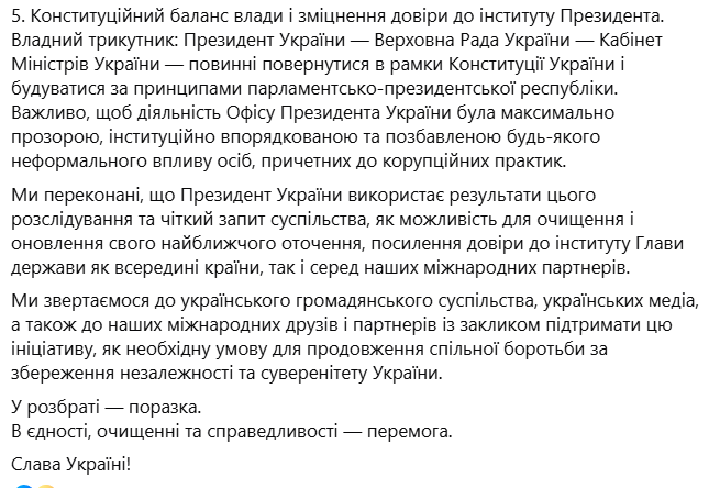 - Мета ініціативи – відновити довіру громадян та зміцнити конституційний баланс