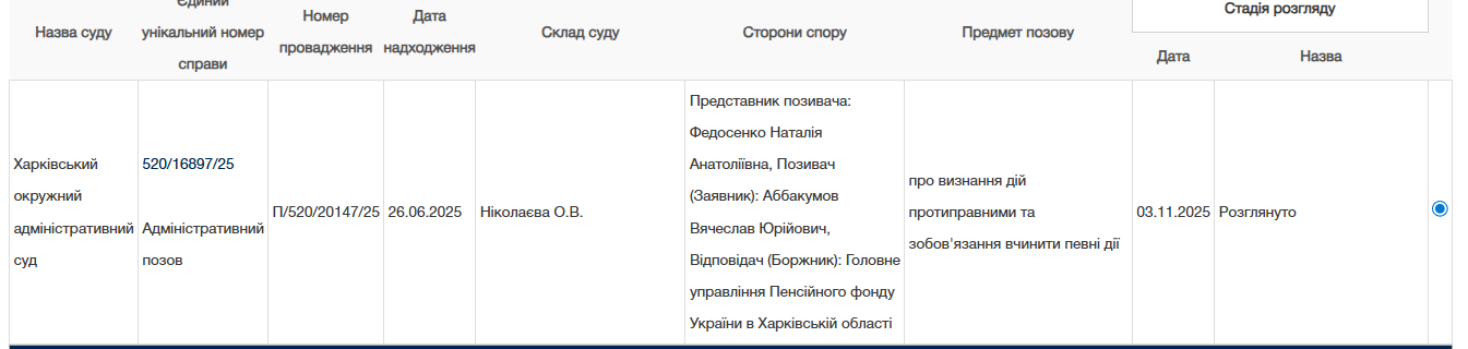 Відповідне рішення Харківській окружний адмінсуд ухвалив 3 листопада 2025-го. В матеріалах справи йдеться про те, що прокурору та чиновнику на пенсії виплату зменшили до 33 748,68 грн. Він терпів аж до серпня і звернувся до суду. Розгляд тривав кілька місяців.