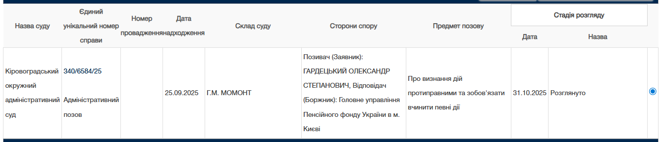 Такого рішення експрокурор домігся в Кіровоградському окружному адмінсуді. З січня і аж до кінця жовтня його пенсія була обмежена коефіцієнтами. Але він не просто скасував їх в суді, але і змусив ПФУ доплатити, починаючи з січня 2025-го. Йдеться про виплату в сотні тисяч гривень.